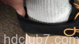 上はデザートブーツとワラビーを履いて、窮屈でない程度に足をつま先側に寄せた画像です。やや厚手の同じ靴下を着用。